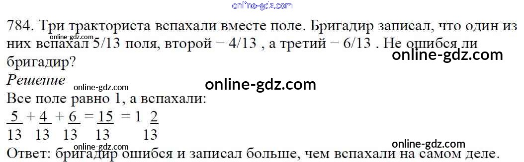 Готовые домашние задания по Математике за 5 класс Учебник Мерзляк, Полонский Алгоритм успеха 2016 - §29. Смешанные числа Глава 4. Обыкновенные дроби 784