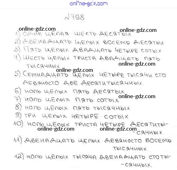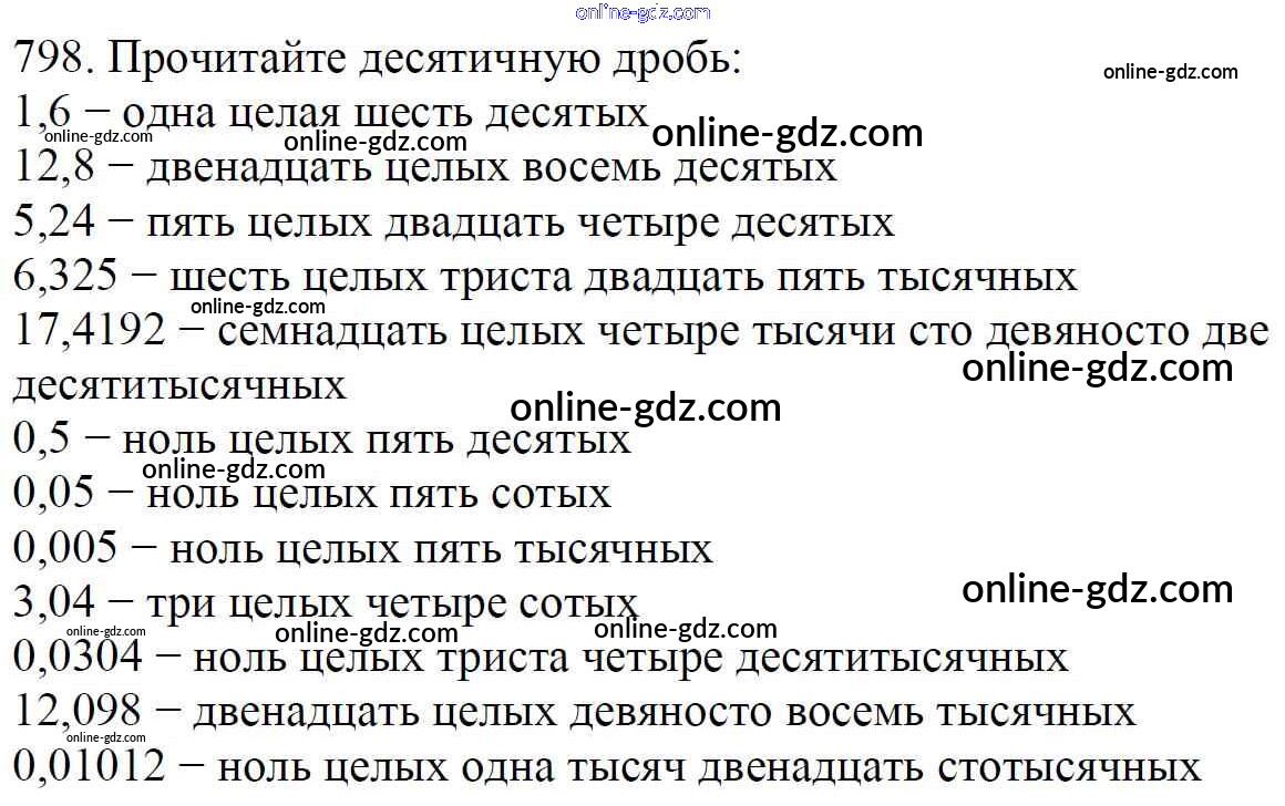 Готовые домашние задания по Математике за 5 класс Учебник Мерзляк, Полонский Алгоритм успеха 2016 - §30. Представление о десятичных дробях Глава 5. Десятичные дроби 798