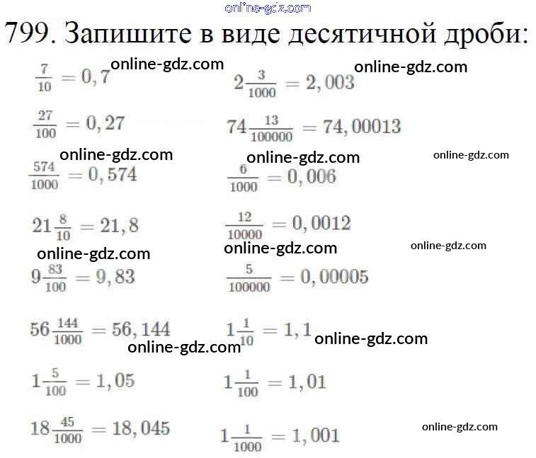 Готовые домашние задания по Математике за 5 класс Учебник Мерзляк, Полонский Алгоритм успеха 2016 - §30. Представление о десятичных дробях Глава 5. Десятичные дроби 799