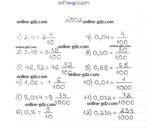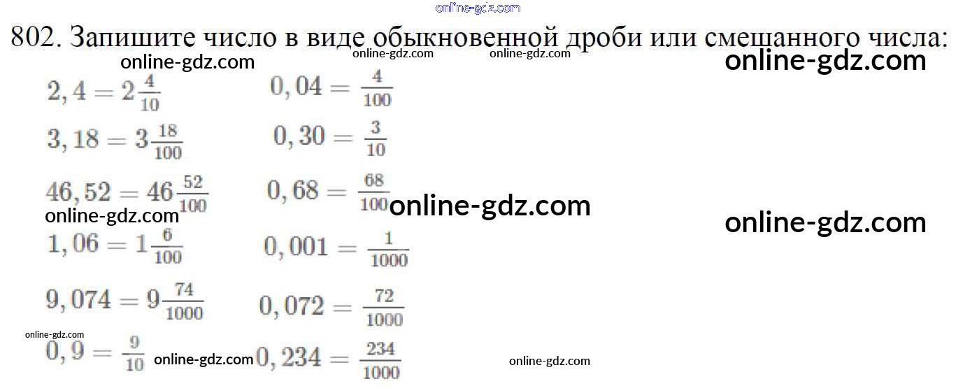 Готовые домашние задания по Математике за 5 класс Учебник Мерзляк, Полонский Алгоритм успеха 2016 - §30. Представление о десятичных дробях Глава 5. Десятичные дроби 802