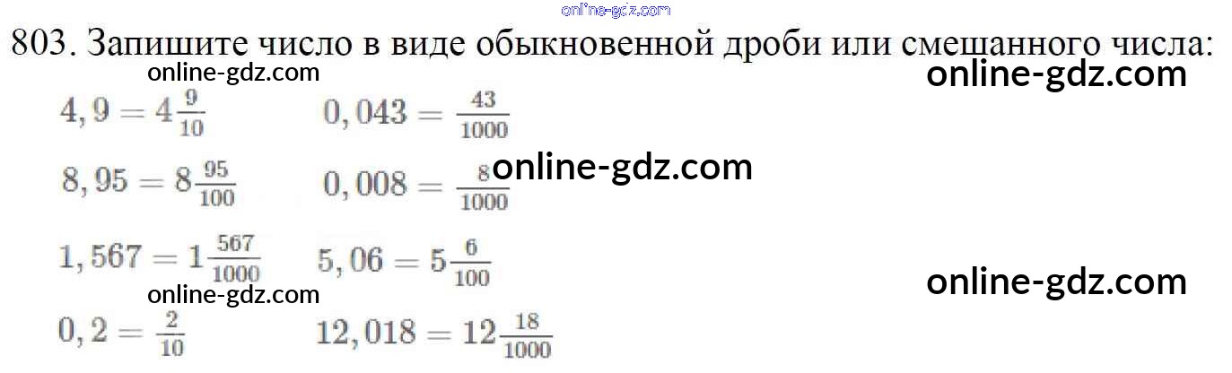 Готовые домашние задания по Математике за 5 класс Учебник Мерзляк, Полонский Алгоритм успеха 2016 - §30. Представление о десятичных дробях Глава 5. Десятичные дроби 803