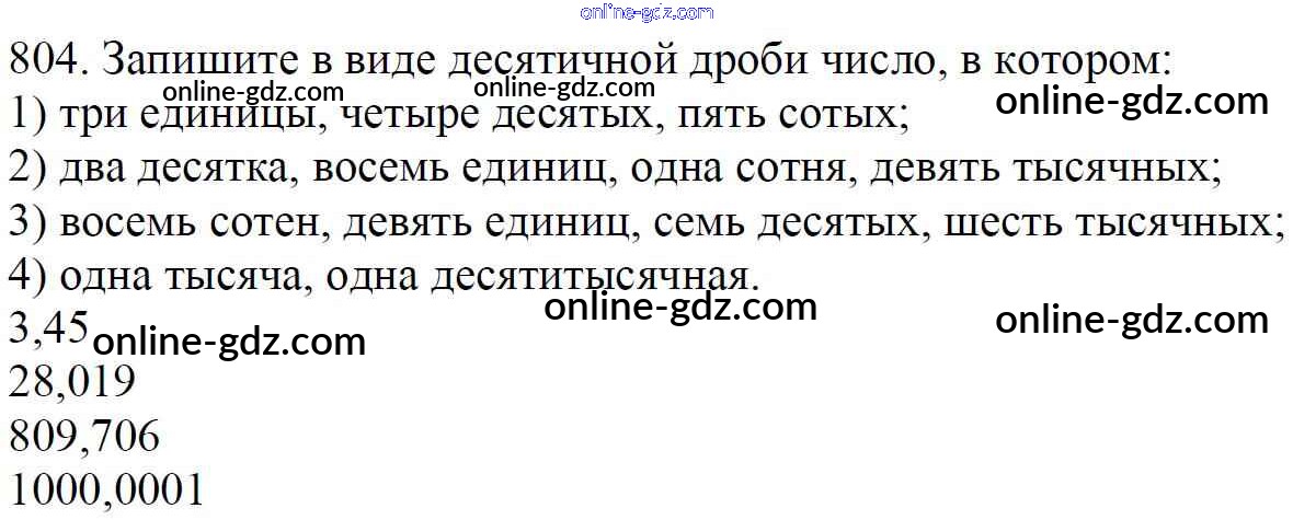 Готовые домашние задания по Математике за 5 класс Учебник Мерзляк, Полонский Алгоритм успеха 2016 - §30. Представление о десятичных дробях Глава 5. Десятичные дроби 804