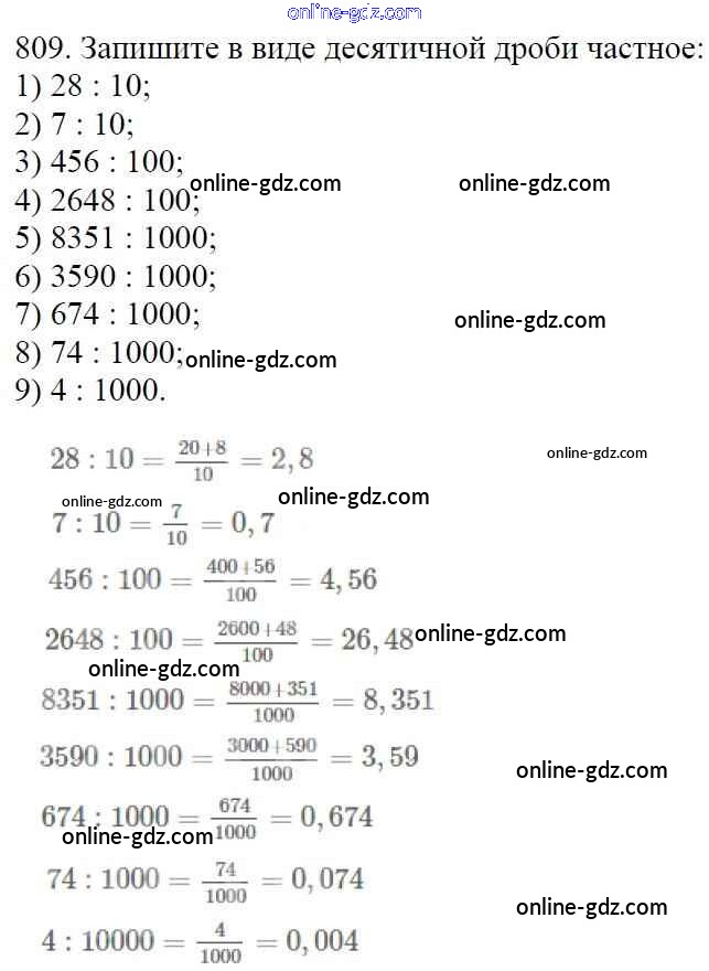 Готовые домашние задания по Математике за 5 класс Учебник Мерзляк, Полонский Алгоритм успеха 2016 - §30. Представление о десятичных дробях Глава 5. Десятичные дроби 809