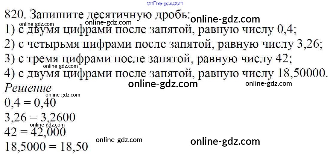 Готовые домашние задания по Математике за 5 класс Учебник Мерзляк, Полонский Алгоритм успеха 2016 - §31. Сравнение десятичных дробей Глава 5. Десятичные дроби 820