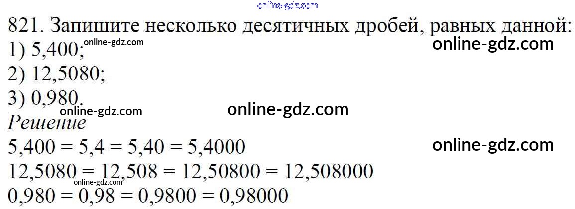 Готовые домашние задания по Математике за 5 класс Учебник Мерзляк, Полонский Алгоритм успеха 2016 - §31. Сравнение десятичных дробей Глава 5. Десятичные дроби 821