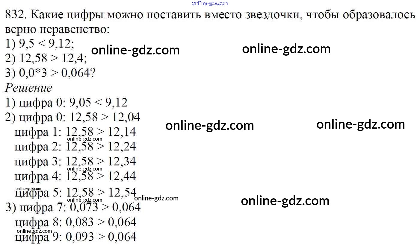 Готовые домашние задания по Математике за 5 класс Учебник Мерзляк, Полонский Алгоритм успеха 2016 - §31. Сравнение десятичных дробей Глава 5. Десятичные дроби 832