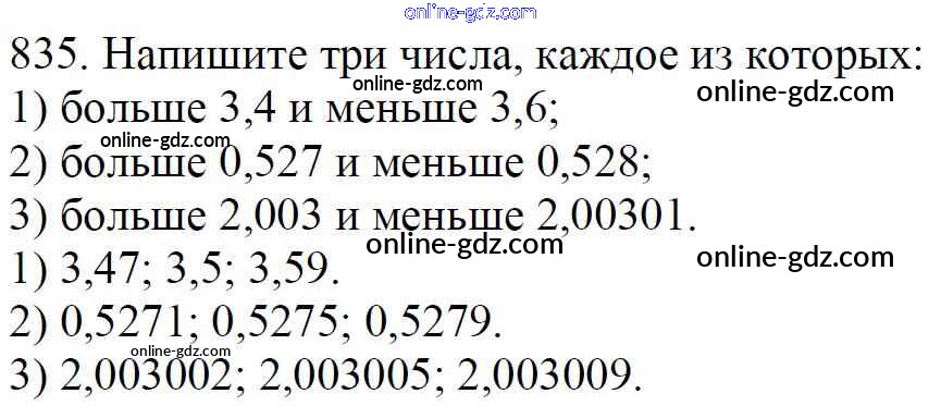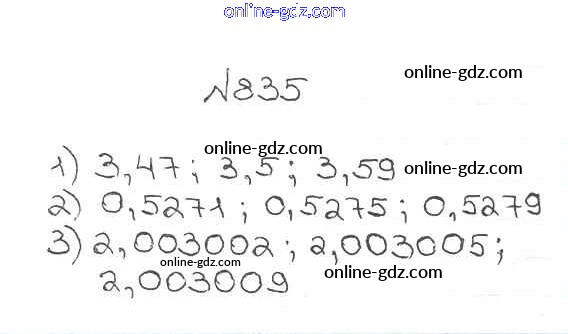Готовые домашние задания по Математике за 5 класс Учебник Мерзляк, Полонский Алгоритм успеха 2016 - §31. Сравнение десятичных дробей Глава 5. Десятичные дроби 835