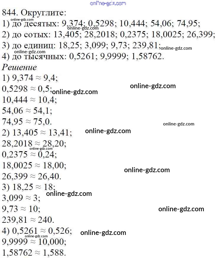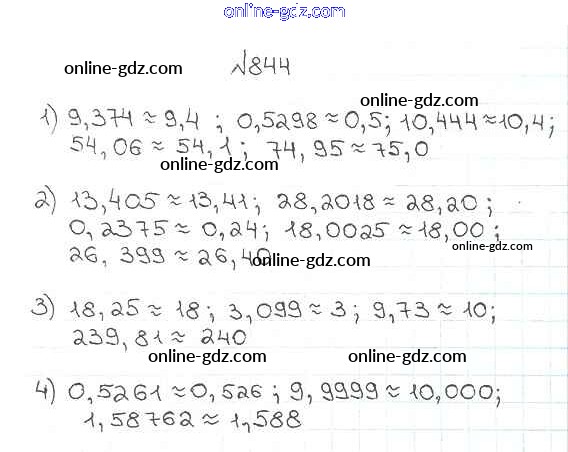 Готовые домашние задания по Математике за 5 класс Учебник Мерзляк, Полонский Алгоритм успеха 2016 - §32. Округление чисел. Прикидки Глава 5. Десятичные дроби 844