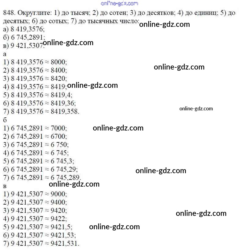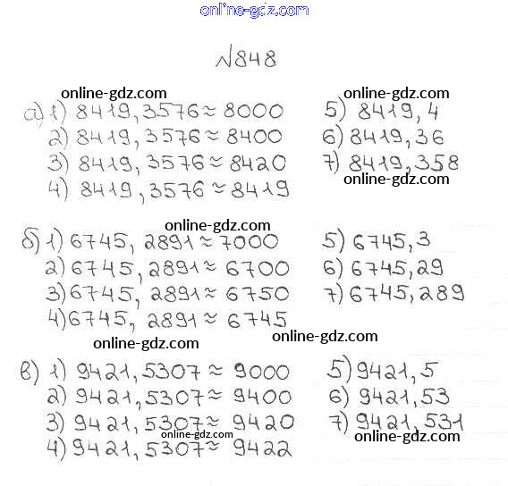 Готовые домашние задания по Математике за 5 класс Учебник Мерзляк, Полонский Алгоритм успеха 2016 - §32. Округление чисел. Прикидки Глава 5. Десятичные дроби 848