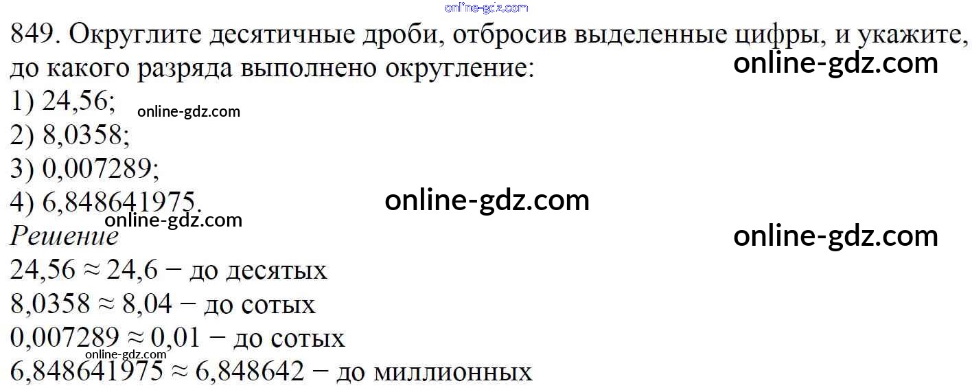 Готовые домашние задания по Математике за 5 класс Учебник Мерзляк, Полонский Алгоритм успеха 2016 - §32. Округление чисел. Прикидки Глава 5. Десятичные дроби 849