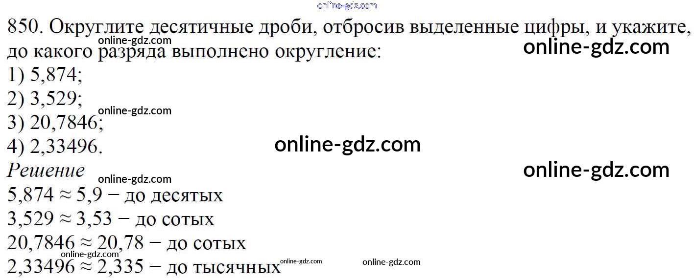 Готовые домашние задания по Математике за 5 класс Учебник Мерзляк, Полонский Алгоритм успеха 2016 - §32. Округление чисел. Прикидки Глава 5. Десятичные дроби 850