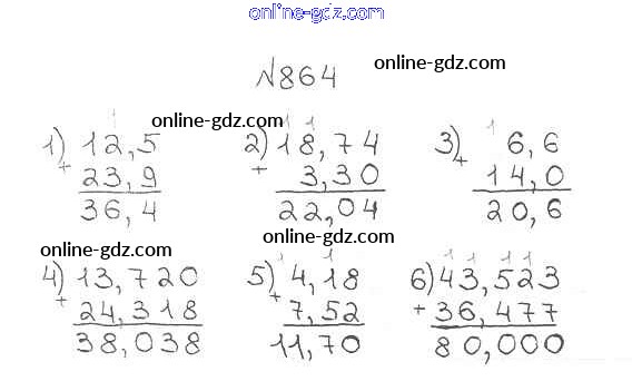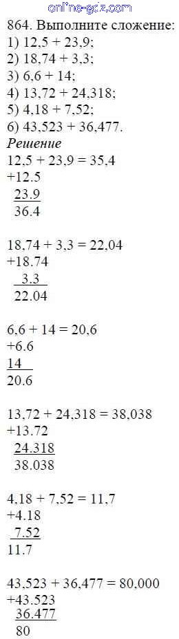 Готовые домашние задания по Математике за 5 класс Учебник Мерзляк, Полонский Алгоритм успеха 2016 - §33. Сложение и вычитание десятичных дробей Глава 5. Десятичные дроби 864