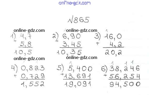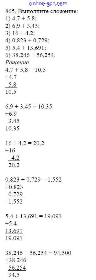 Готовые домашние задания по Математике за 5 класс Учебник Мерзляк, Полонский Алгоритм успеха 2016 - §33. Сложение и вычитание десятичных дробей Глава 5. Десятичные дроби 865
