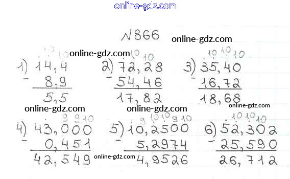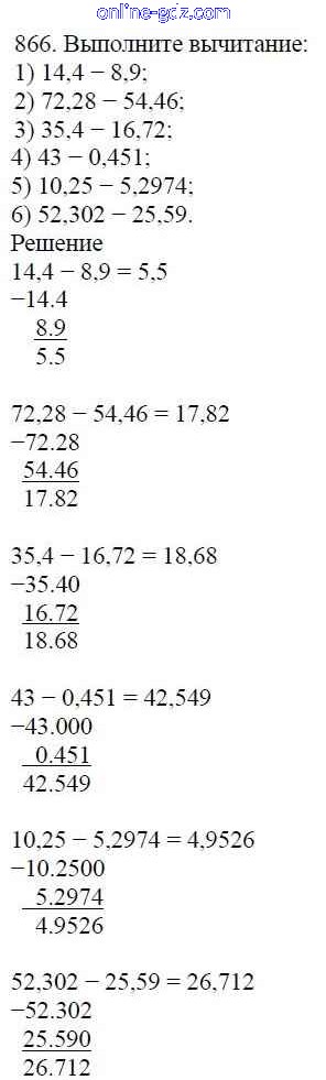 Готовые домашние задания по Математике за 5 класс Учебник Мерзляк, Полонский Алгоритм успеха 2016 - §33. Сложение и вычитание десятичных дробей Глава 5. Десятичные дроби 866