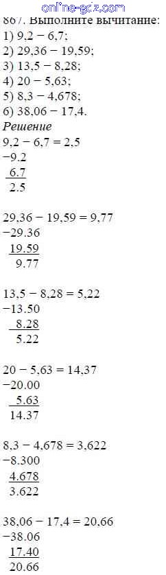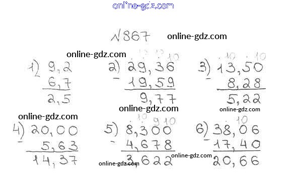 Готовые домашние задания по Математике за 5 класс Учебник Мерзляк, Полонский Алгоритм успеха 2016 - §33. Сложение и вычитание десятичных дробей Глава 5. Десятичные дроби 867
