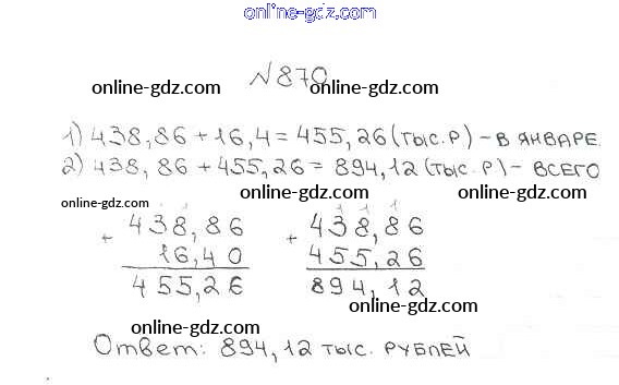 Готовые домашние задания по Математике за 5 класс Учебник Мерзляк, Полонский Алгоритм успеха 2016 - §33. Сложение и вычитание десятичных дробей Глава 5. Десятичные дроби 870