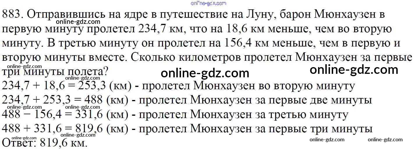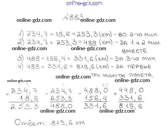 Готовые домашние задания по Математике за 5 класс Учебник Мерзляк, Полонский Алгоритм успеха 2016 - §33. Сложение и вычитание десятичных дробей Глава 5. Десятичные дроби 883