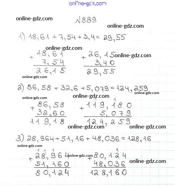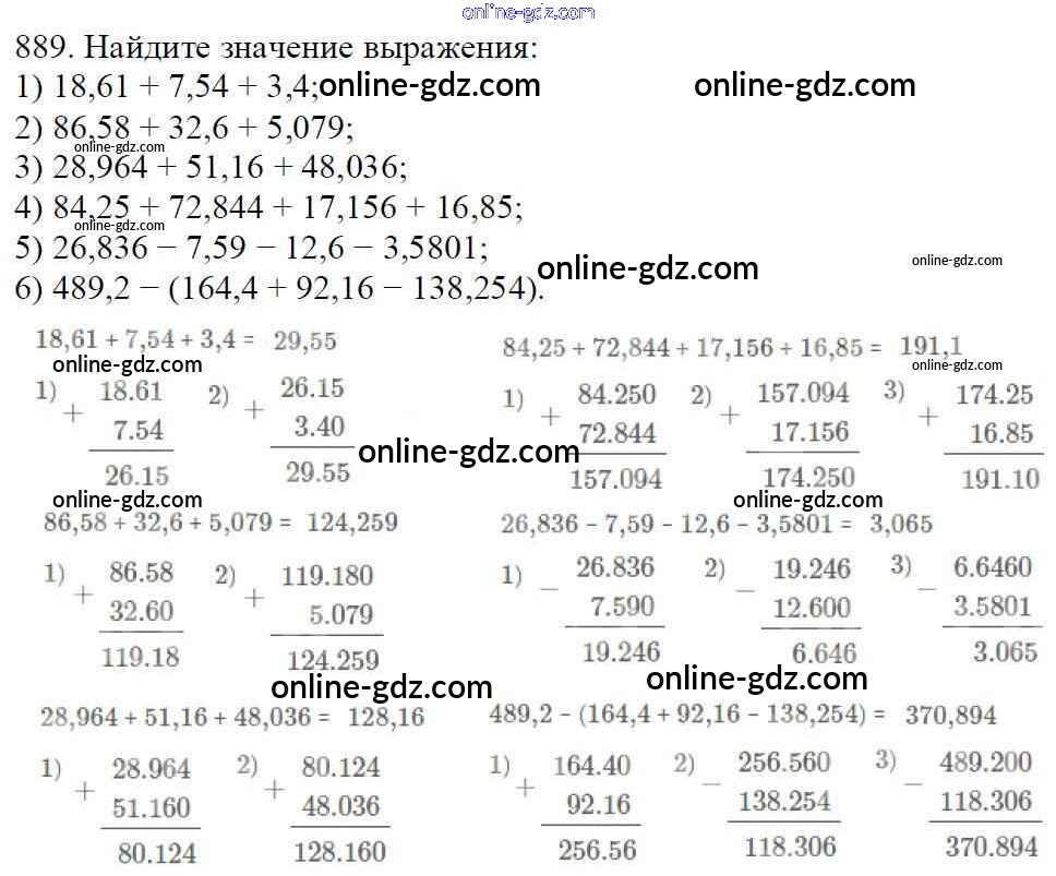 Готовые домашние задания по Математике за 5 класс Учебник Мерзляк, Полонский Алгоритм успеха 2016 - §33. Сложение и вычитание десятичных дробей Глава 5. Десятичные дроби 889