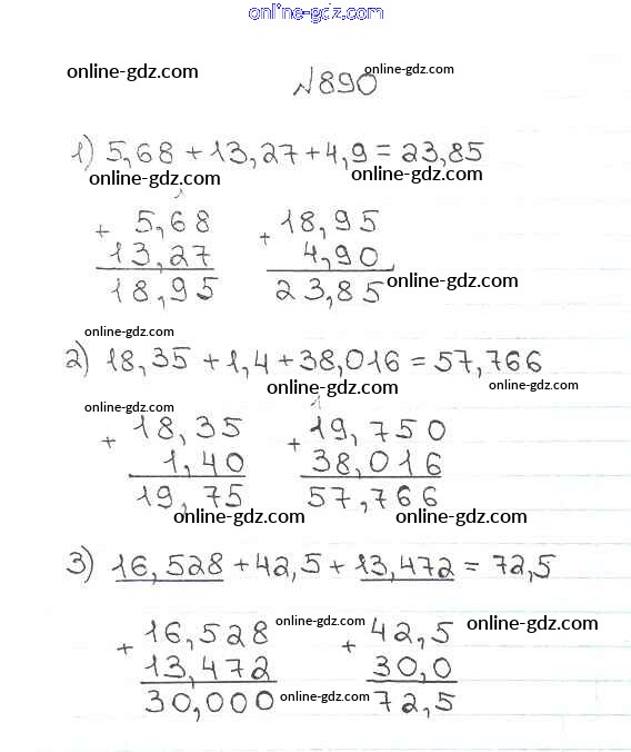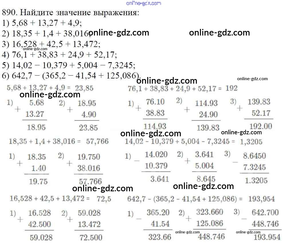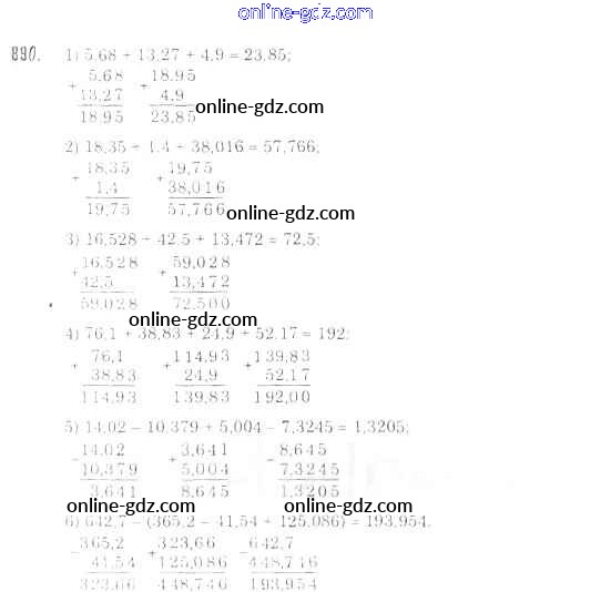 Готовые домашние задания по Математике за 5 класс Учебник Мерзляк, Полонский Алгоритм успеха 2016 - §33. Сложение и вычитание десятичных дробей Глава 5. Десятичные дроби 890
