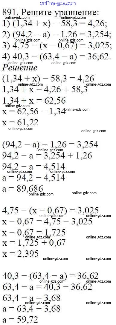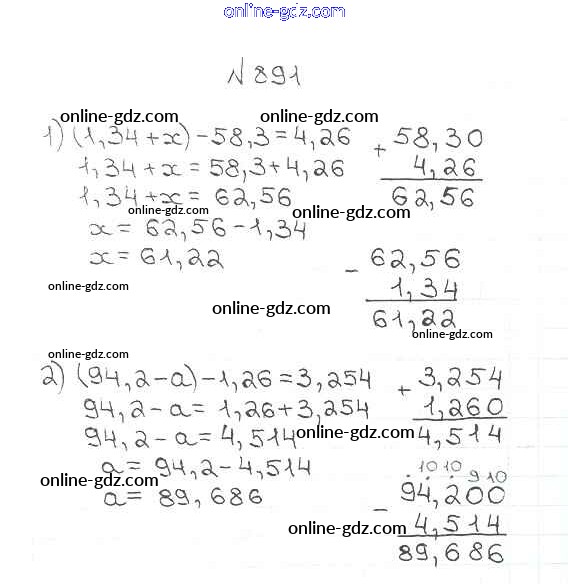 Готовые домашние задания по Математике за 5 класс Учебник Мерзляк, Полонский Алгоритм успеха 2016 - §33. Сложение и вычитание десятичных дробей Глава 5. Десятичные дроби 891