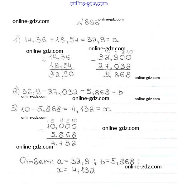 Готовые домашние задания по Математике за 5 класс Учебник Мерзляк, Полонский Алгоритм успеха 2016 - §33. Сложение и вычитание десятичных дробей Глава 5. Десятичные дроби 896