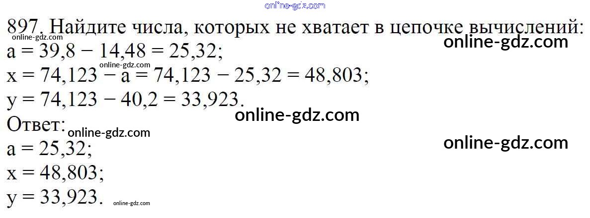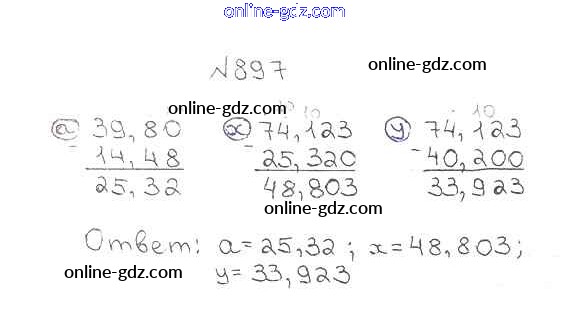 Готовые домашние задания по Математике за 5 класс Учебник Мерзляк, Полонский Алгоритм успеха 2016 - §33. Сложение и вычитание десятичных дробей Глава 5. Десятичные дроби 897