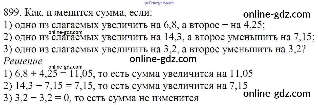 Готовые домашние задания по Математике за 5 класс Учебник Мерзляк, Полонский Алгоритм успеха 2016 - §33. Сложение и вычитание десятичных дробей Глава 5. Десятичные дроби 899