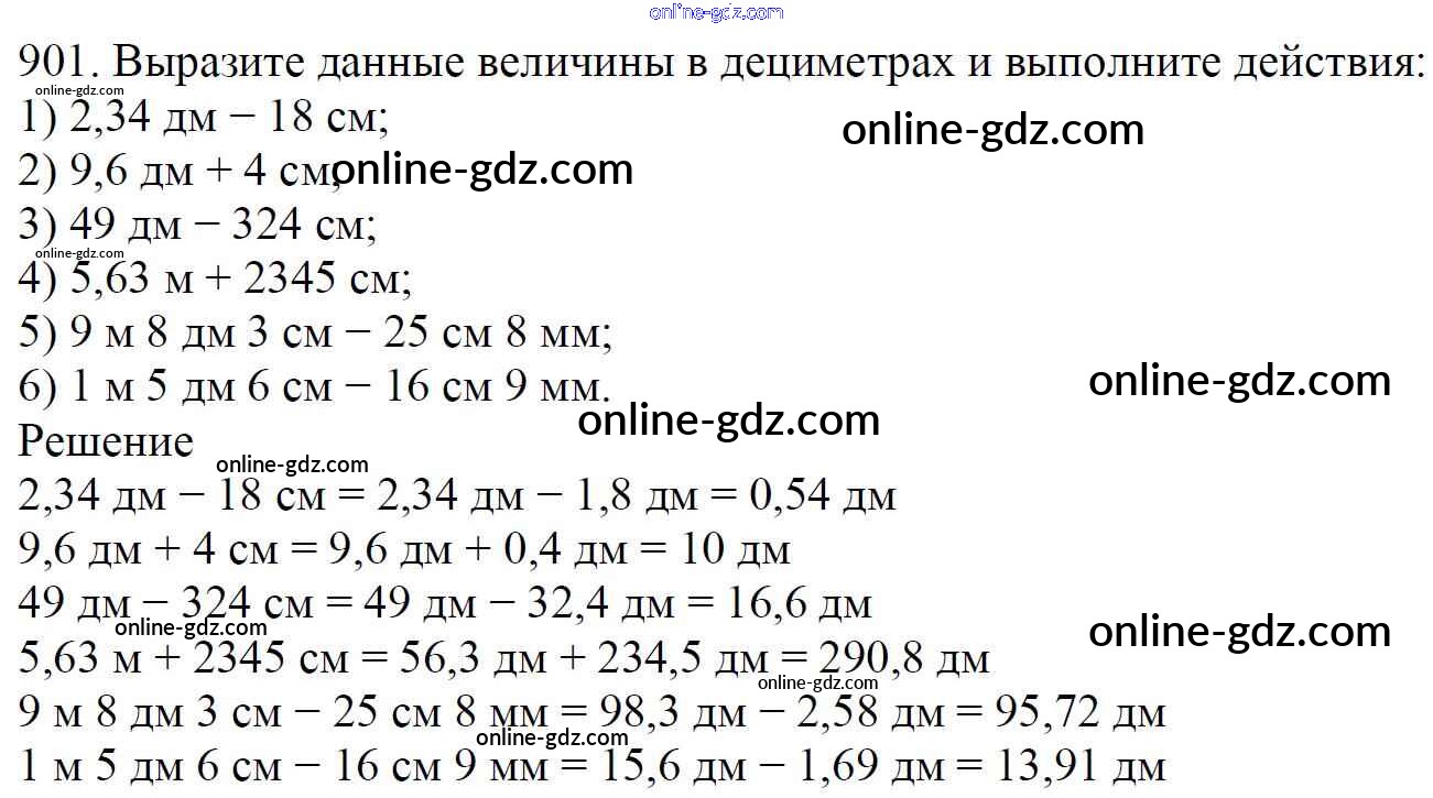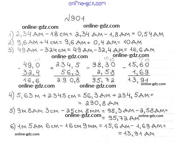 Готовые домашние задания по Математике за 5 класс Учебник Мерзляк, Полонский Алгоритм успеха 2016 - §33. Сложение и вычитание десятичных дробей Глава 5. Десятичные дроби 901
