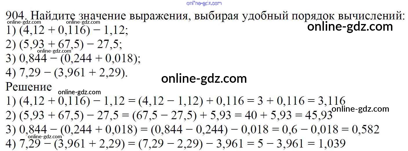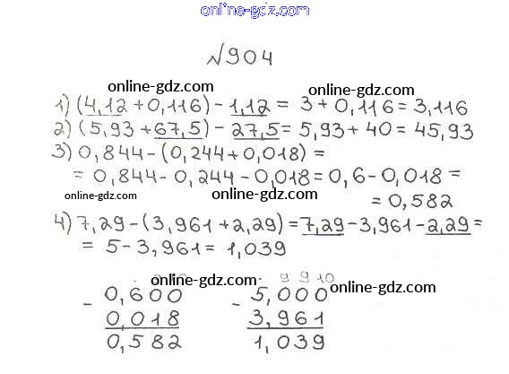 Готовые домашние задания по Математике за 5 класс Учебник Мерзляк, Полонский Алгоритм успеха 2016 - §33. Сложение и вычитание десятичных дробей Глава 5. Десятичные дроби 904