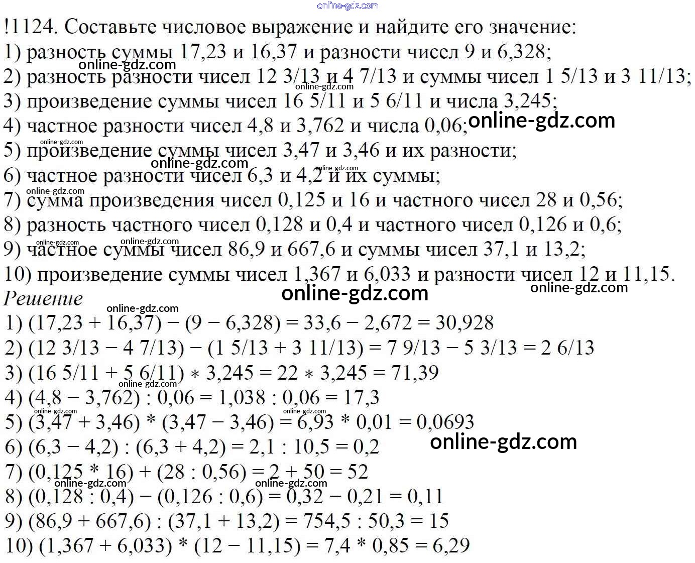 Готовые домашние задания по Математике за 5 класс Учебник Мерзляк, Полонский Алгоритм успеха 2016 - Упражнения для повторения за курс 5 класса 1124