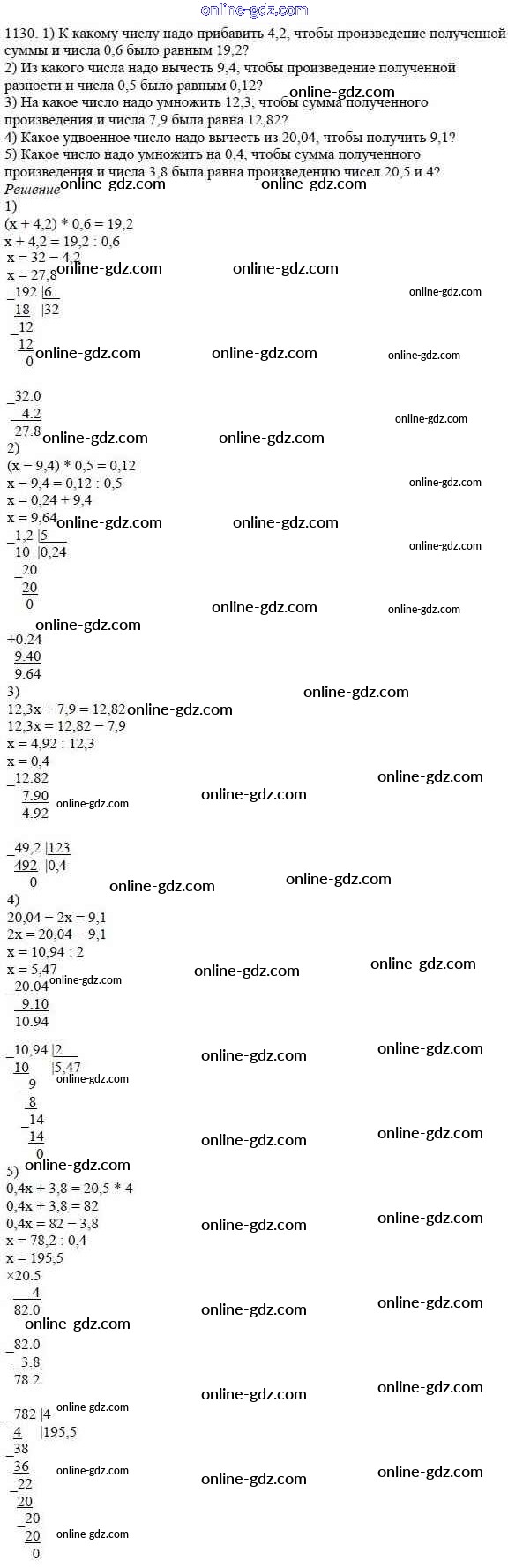 Готовые домашние задания по Математике за 5 класс Учебник Мерзляк, Полонский Алгоритм успеха 2016 - Упражнения для повторения за курс 5 класса 1130