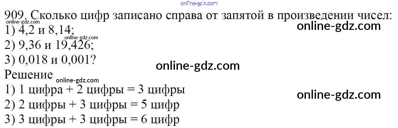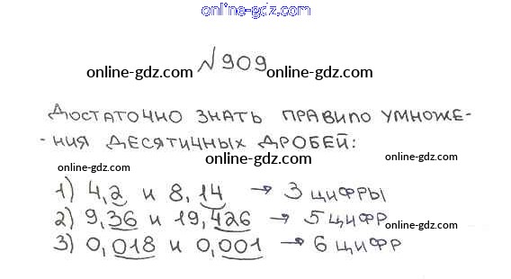 Готовые домашние задания по Математике за 5 класс Учебник Мерзляк, Полонский Алгоритм успеха 2016 - §34. Умножение десятичных дробей Глава 5. Десятичные дроби 909