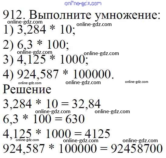 Готовые домашние задания по Математике за 5 класс Учебник Мерзляк, Полонский Алгоритм успеха 2016 - §34. Умножение десятичных дробей Глава 5. Десятичные дроби 912