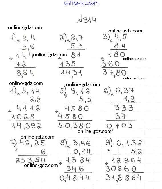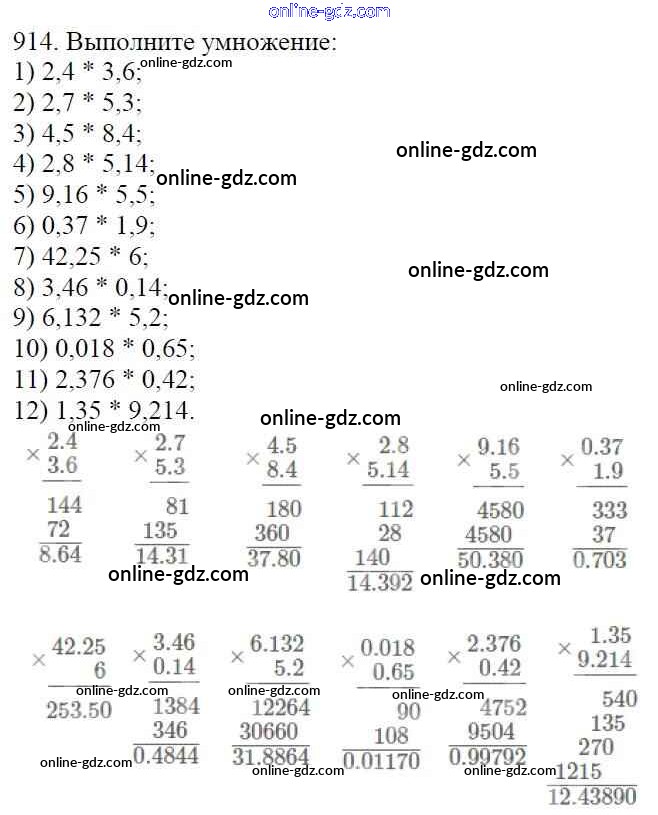 Готовые домашние задания по Математике за 5 класс Учебник Мерзляк, Полонский Алгоритм успеха 2016 - §34. Умножение десятичных дробей Глава 5. Десятичные дроби 914