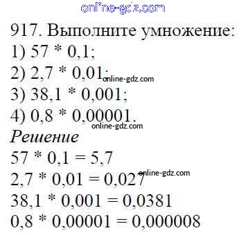 Готовые домашние задания по Математике за 5 класс Учебник Мерзляк, Полонский Алгоритм успеха 2016 - §34. Умножение десятичных дробей Глава 5. Десятичные дроби 917
