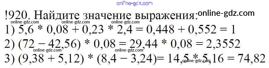 Готовые домашние задания по Математике за 5 класс Учебник Мерзляк, Полонский Алгоритм успеха 2016 - §34. Умножение десятичных дробей Глава 5. Десятичные дроби 920