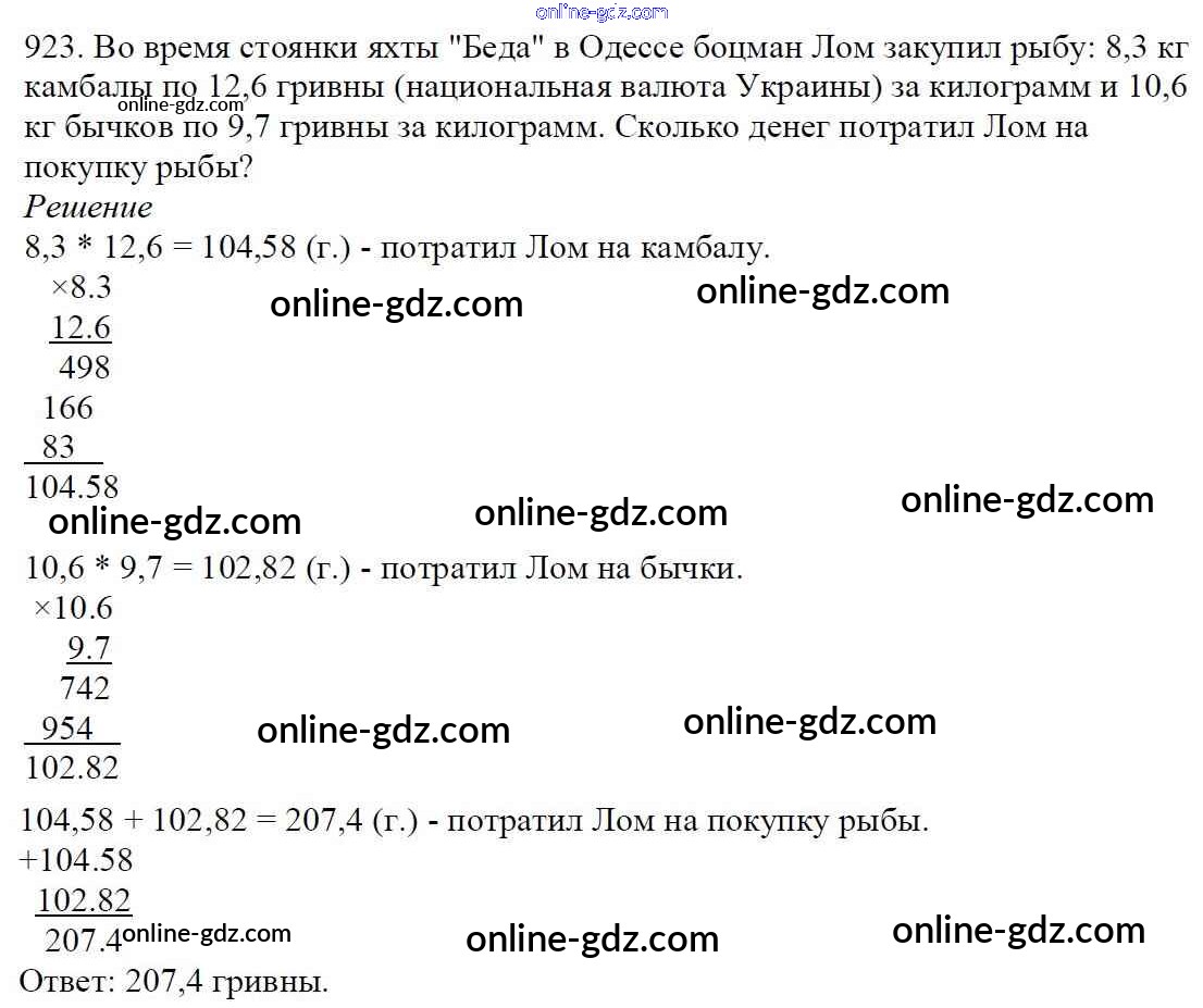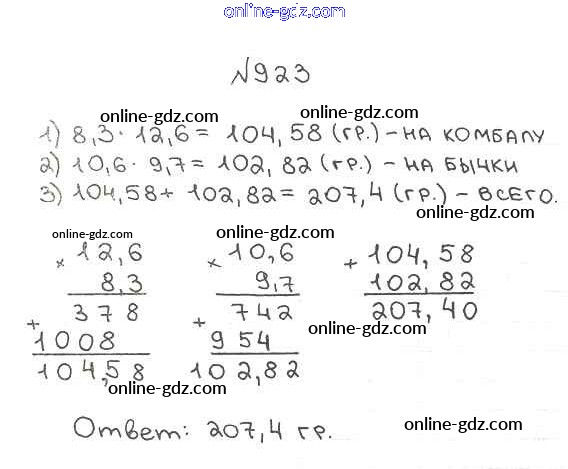 Готовые домашние задания по Математике за 5 класс Учебник Мерзляк, Полонский Алгоритм успеха 2016 - §34. Умножение десятичных дробей Глава 5. Десятичные дроби 923