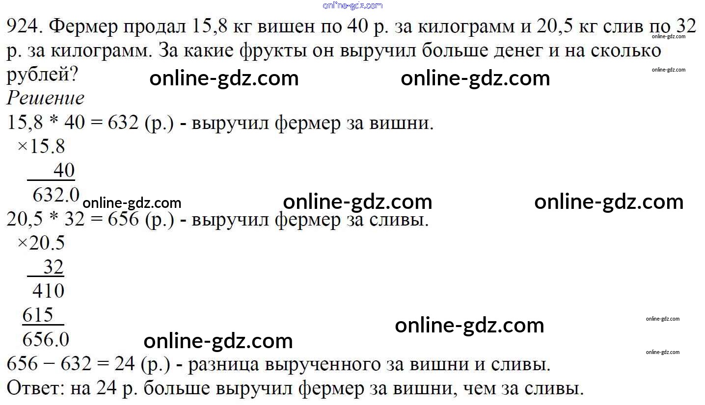 Готовые домашние задания по Математике за 5 класс Учебник Мерзляк, Полонский Алгоритм успеха 2016 - §34. Умножение десятичных дробей Глава 5. Десятичные дроби 924