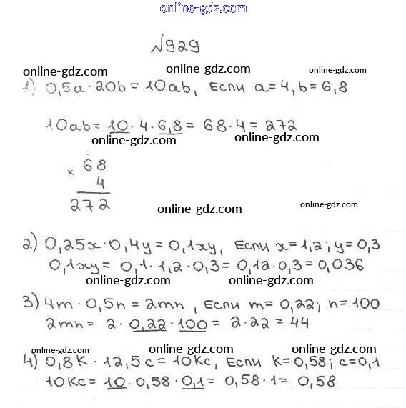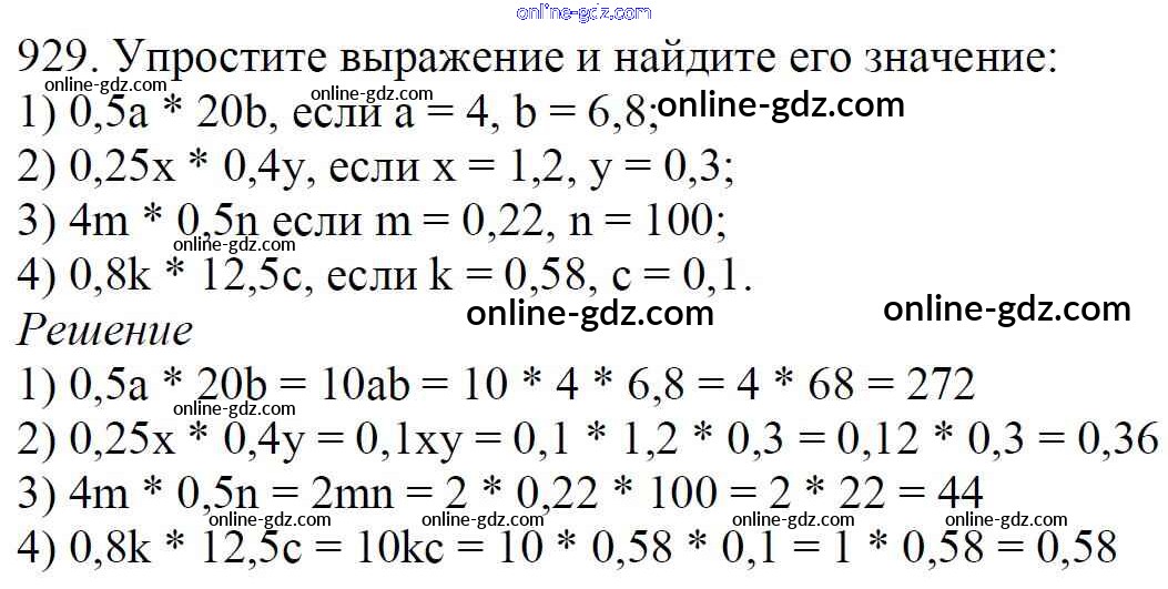 Готовые домашние задания по Математике за 5 класс Учебник Мерзляк, Полонский Алгоритм успеха 2016 - §34. Умножение десятичных дробей Глава 5. Десятичные дроби 929