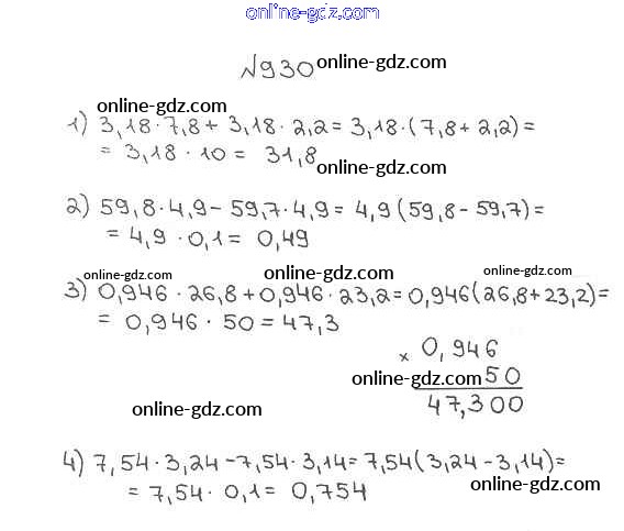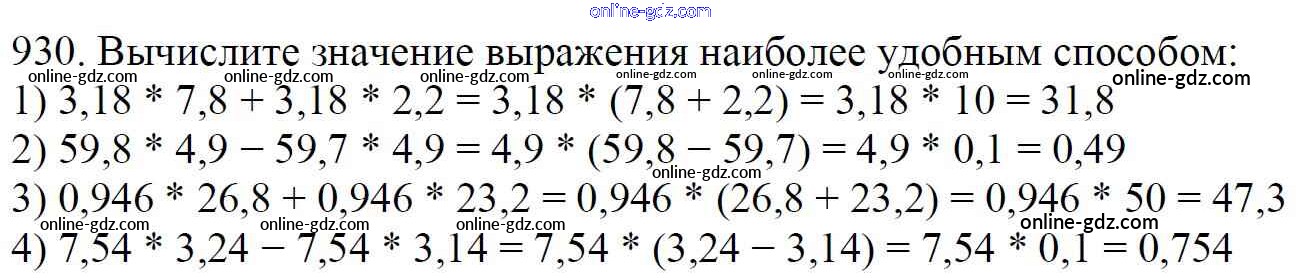 Готовые домашние задания по Математике за 5 класс Учебник Мерзляк, Полонский Алгоритм успеха 2016 - §34. Умножение десятичных дробей Глава 5. Десятичные дроби 930