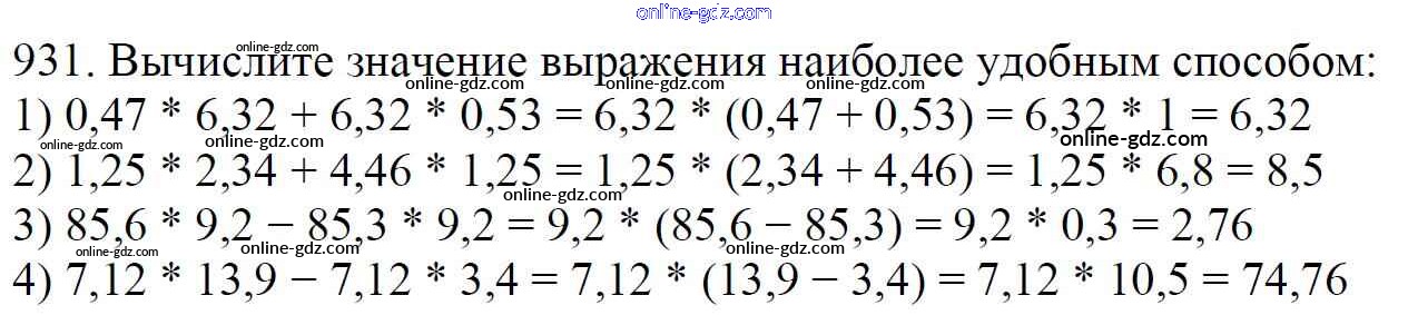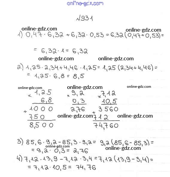 Готовые домашние задания по Математике за 5 класс Учебник Мерзляк, Полонский Алгоритм успеха 2016 - §34. Умножение десятичных дробей Глава 5. Десятичные дроби 931
