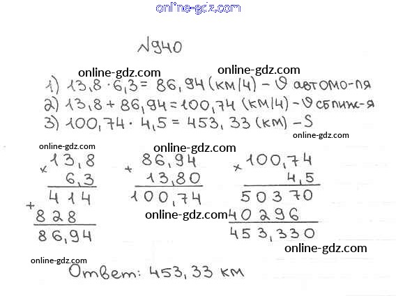 Готовые домашние задания по Математике за 5 класс Учебник Мерзляк, Полонский Алгоритм успеха 2016 - §34. Умножение десятичных дробей Глава 5. Десятичные дроби 940