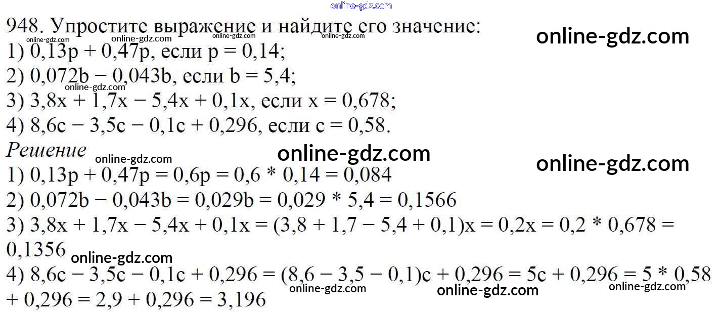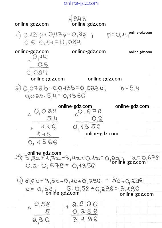 Готовые домашние задания по Математике за 5 класс Учебник Мерзляк, Полонский Алгоритм успеха 2016 - §34. Умножение десятичных дробей Глава 5. Десятичные дроби 948