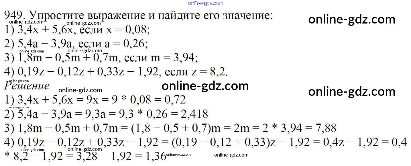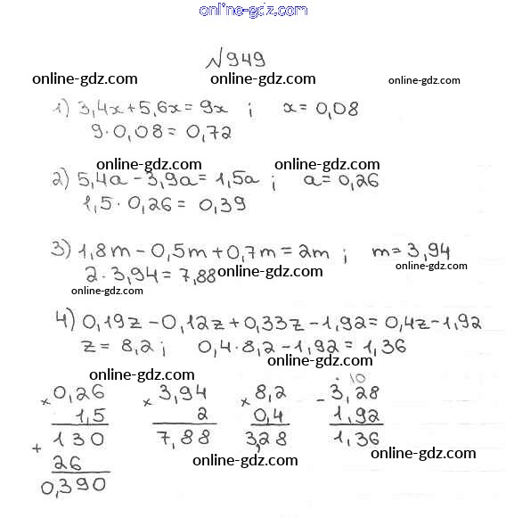 Готовые домашние задания по Математике за 5 класс Учебник Мерзляк, Полонский Алгоритм успеха 2016 - §34. Умножение десятичных дробей Глава 5. Десятичные дроби 949