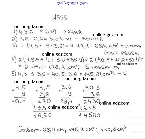 Готовые домашние задания по Математике за 5 класс Учебник Мерзляк, Полонский Алгоритм успеха 2016 - §34. Умножение десятичных дробей Глава 5. Десятичные дроби 955