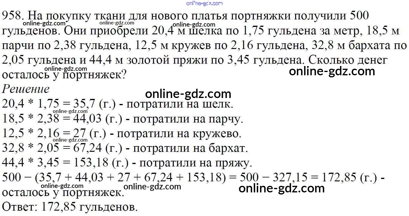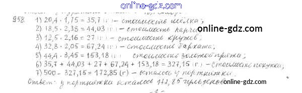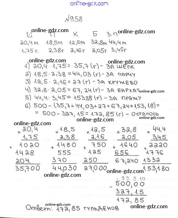 Готовые домашние задания по Математике за 5 класс Учебник Мерзляк, Полонский Алгоритм успеха 2016 - §34. Умножение десятичных дробей Глава 5. Десятичные дроби 958