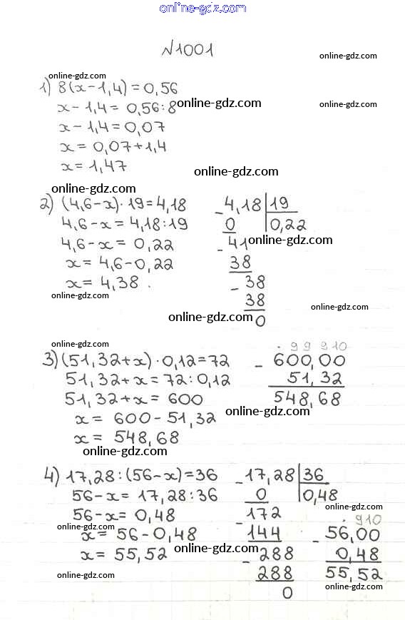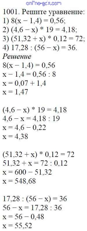Готовые домашние задания по Математике за 5 класс Учебник Мерзляк, Полонский Алгоритм успеха 2016 - §35. Деление десятичных дробей Глава 5. Десятичные дроби 1001