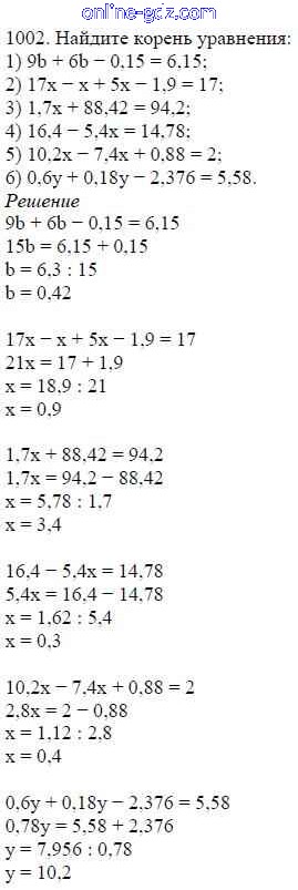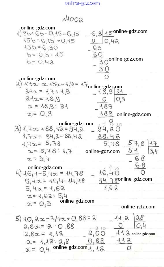 Готовые домашние задания по Математике за 5 класс Учебник Мерзляк, Полонский Алгоритм успеха 2016 - §35. Деление десятичных дробей Глава 5. Десятичные дроби 1002