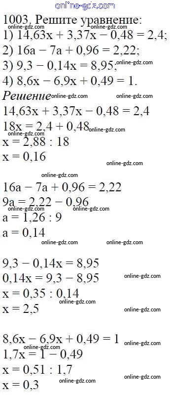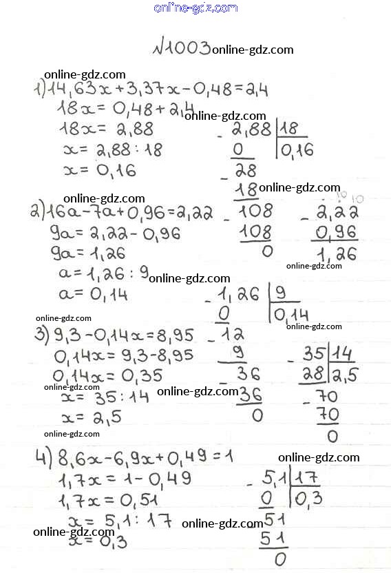 Готовые домашние задания по Математике за 5 класс Учебник Мерзляк, Полонский Алгоритм успеха 2016 - §35. Деление десятичных дробей Глава 5. Десятичные дроби 1003