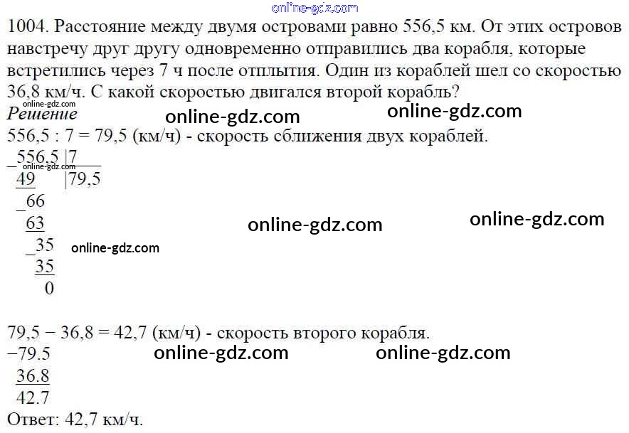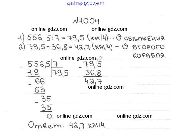 Готовые домашние задания по Математике за 5 класс Учебник Мерзляк, Полонский Алгоритм успеха 2016 - §35. Деление десятичных дробей Глава 5. Десятичные дроби 1004